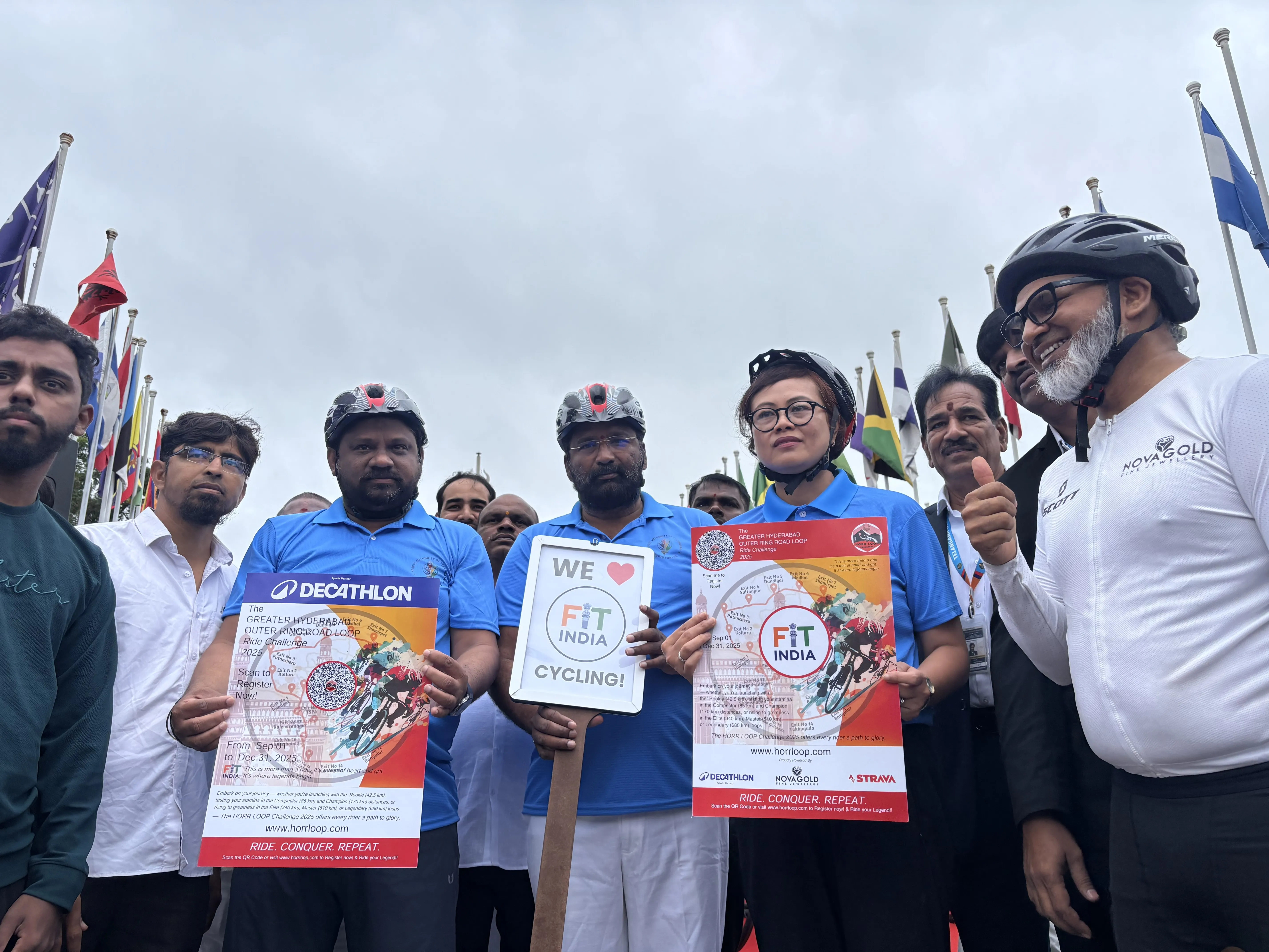 Presenting The HORR LOOP Challenge 2025, Sri Vakiti Srihari Garu, Hon'ble Minister for Sports and Youth Affairs, Sri Shiva Sena Reddy Garu, Chairman, Sports Authority of Telangana, Smt. A Sonibala Devi Garu, IFS, Vice Chairman & Managing Director, Sports Authority of Telangana